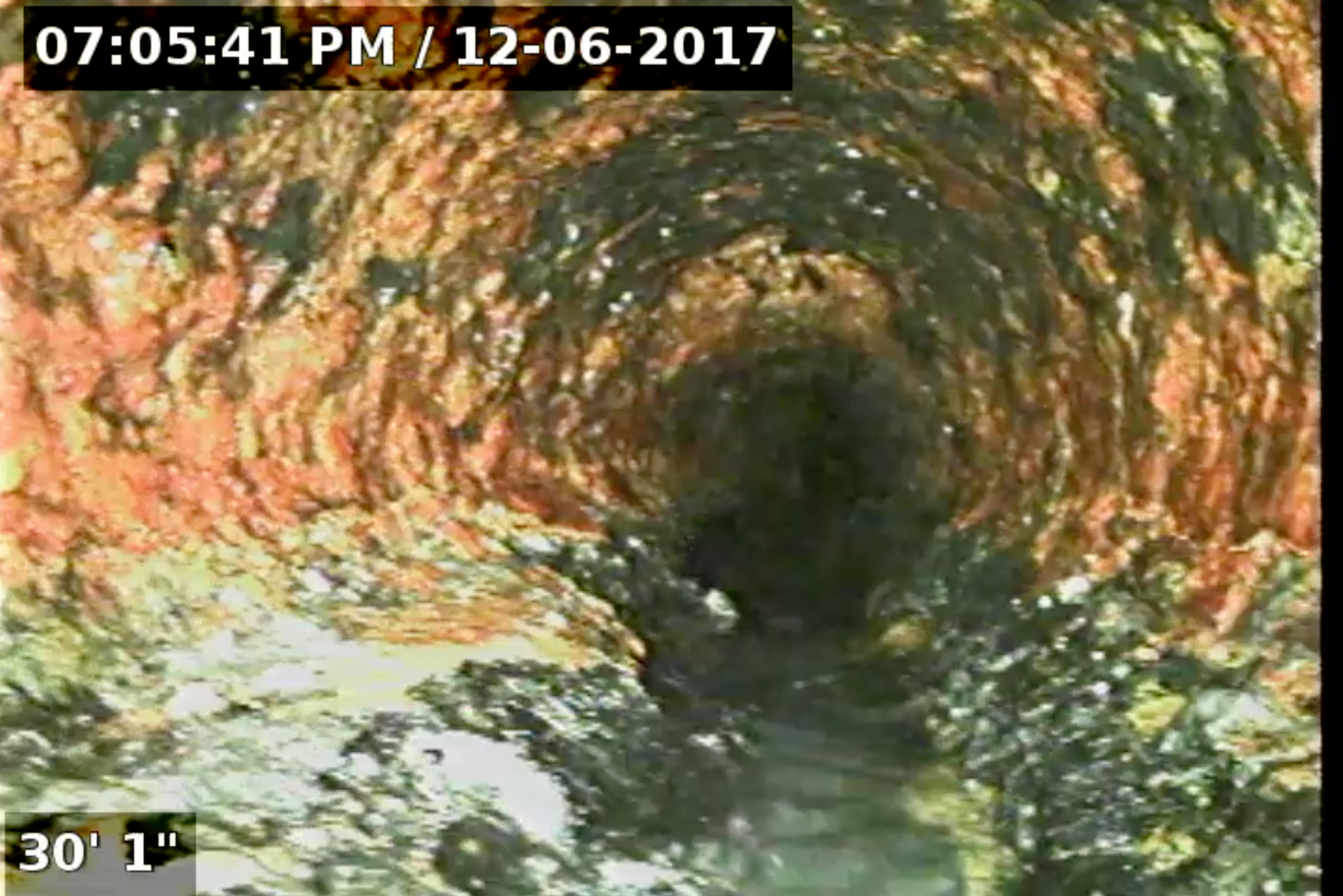 Here we found a severely corroded cast iron pipe. Unfortunately, the pipe has likely started to allow sewage in to the surrounding soil through the channel that developed in the bottom of the pipe